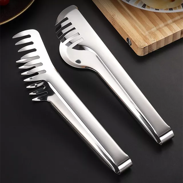 Make serving and cooking easier with these Stainless Steel Kitchen Food Tongs designed for reliable use in any home or professional kitchen. Crafted from high-quality stainless steel, these tongs are strong enough to handle everything from delicate salads to hearty beef cuts with ease. The half-round comb-style clamp offers a secure grip and a smart draining design that lets oil and water pass through, keeping your food fresh and your hands clean.