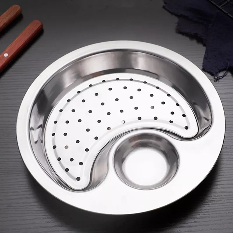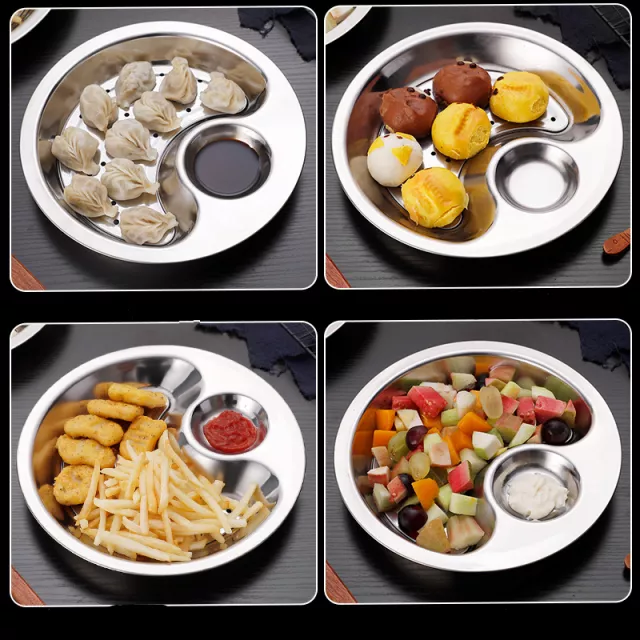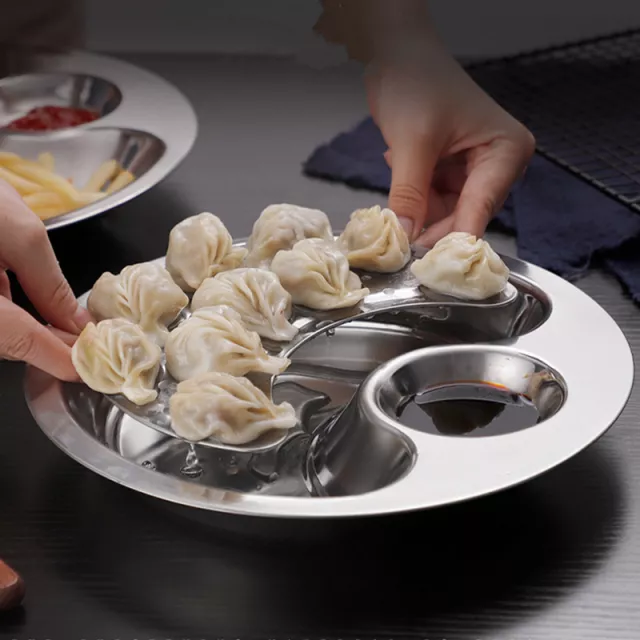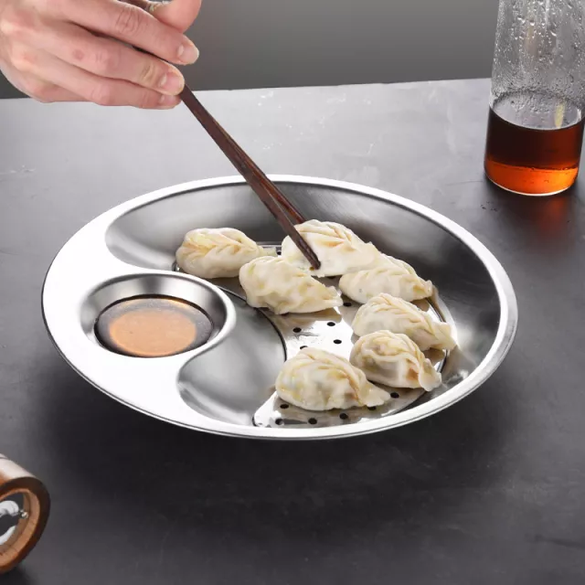 Take your food presentation to the next level with this elegant and functional Stainless Steel Round Dumpling & Snack Tray with Dipping Sauce Compartment. Whether you’re serving crispy dumplings, golden French fries, fresh-cut fruits, or even party snacks, this all-in-one tray is your go-to solution for stylish and practical plating. Thoughtfully designed with a built-in dipping dish and a detachable strainer, this tray combines sleek modern design with everyday functionality.