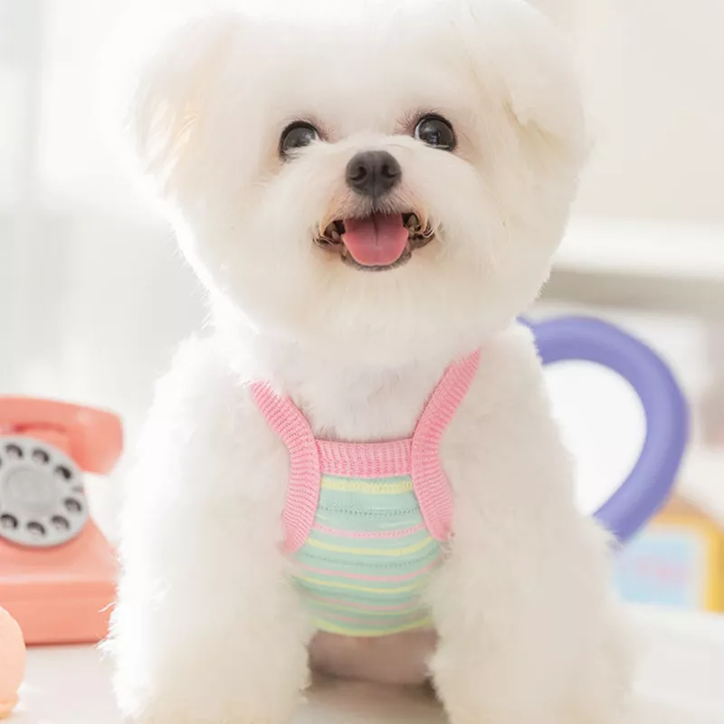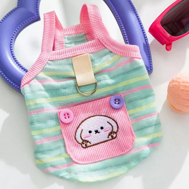 These striped overalls for my pet are just perfect. The lightweight fabric ensures that he doesn't get too hot during the summer months, and the cute teddy bear pocket adds a touch of whimsy to his look. He's comfortable enough to play around freely, and I'm happy knowing that he's not overheating in his outfit. Would definitely recommend these to any dog owner looking for stylish yet practical clothing options.