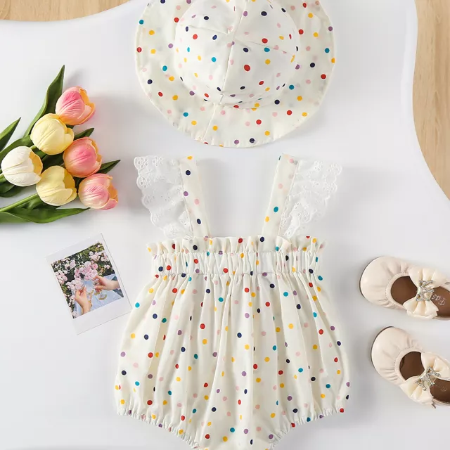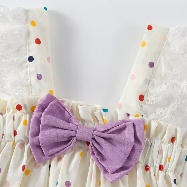 Let your baby girl shine in the sunshine with this delightful sleeveless polka dot bodysuit, designed for warm days and endless giggles. Featuring a colorful, cheerful dot print and a sweet front bow, this one-piece outfit brings charm and comfort together in one precious design. Whether it’s for a sunny stroll in the park, a family gathering, or a playdate, this bodysuit is the perfect pick for a stylish summer wardrobe.