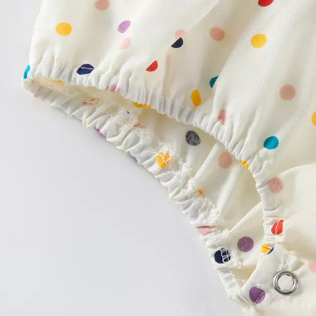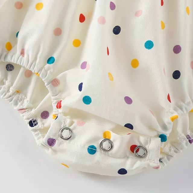 Make this colorful dot bodysuit your baby girl’s go-to outfit for the sunny season. It’s the perfect blend of cuteness and comfort, designed to keep your little one looking fresh and feeling good all summer long. Add it to your cart today and dress your baby in a look that’s as joyful as her smile!