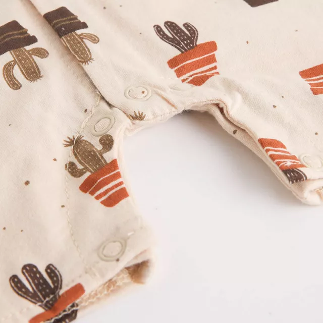 Make your baby’s summer wardrobe pop with this charming cactus print romper, perfect for babies aged 3 to 24 months. With a playful desert-inspired design in earthy tones, this short-sleeve jumpsuit is made to turn heads while keeping your little one cool and comfy. Whether your toddler is crawling around the living room or enjoying their first sunny park outing, this romper is designed to keep up with their every move.