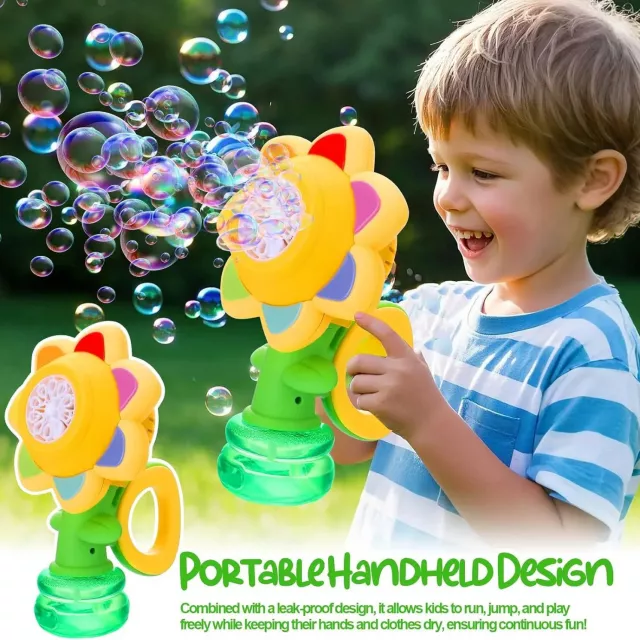 The Sunflower Bubble Machine is more than just a toy—it’s an experience! Designed to ignite the imagination, this fun-filled bubble blower brings magical moments to life with its captivating flower design, colorful LED lights, and high-speed bubble creation. The dual bubble guns provide a spectacular and dense cloud of bubbles that fills the air with joy. Whether used in the backyard, at the beach, or during outdoor events, it’s the perfect way to keep kids entertained for hours.