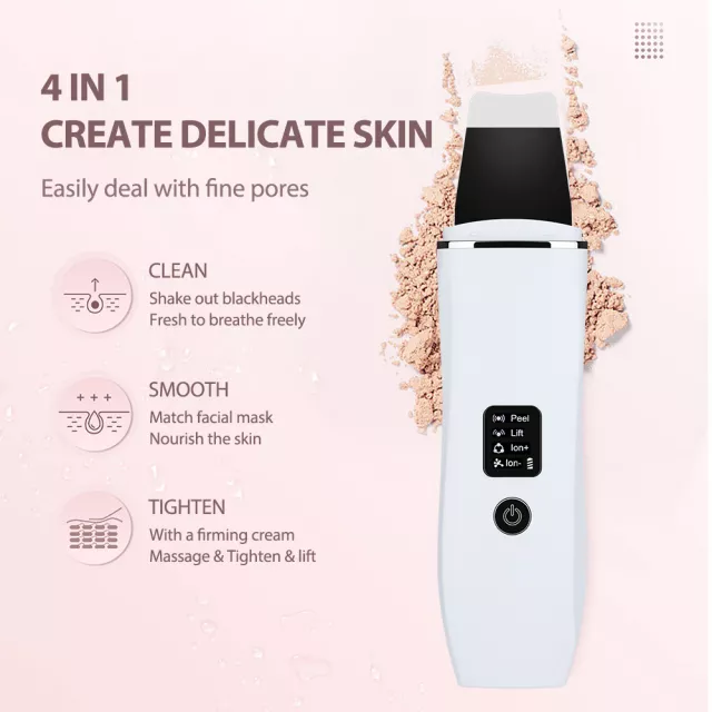 • Deep Ultrasonic Cleansing: High-frequency vibration lifts out dirt, oil, blackheads, and impurities from deep within the pores.