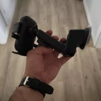 this one does exactly what i need - holds my phone securely without blocking visibility or getting in the way, plus its super strong suction cup means i don't have to worry about it coming loose mid-drive.