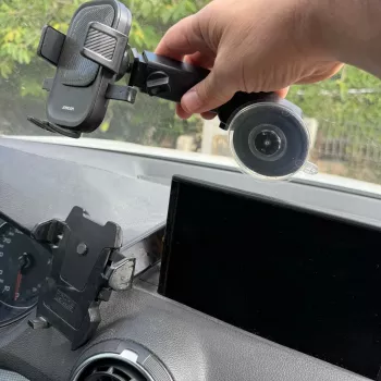 This car mount is a lifesaver for those long road trips. Its suction cup sticks like glue to the dashboard and windshield, keeping my phone secure even on bumpy roads. Plus, it's easy to install and adjust. Perfect in every way!