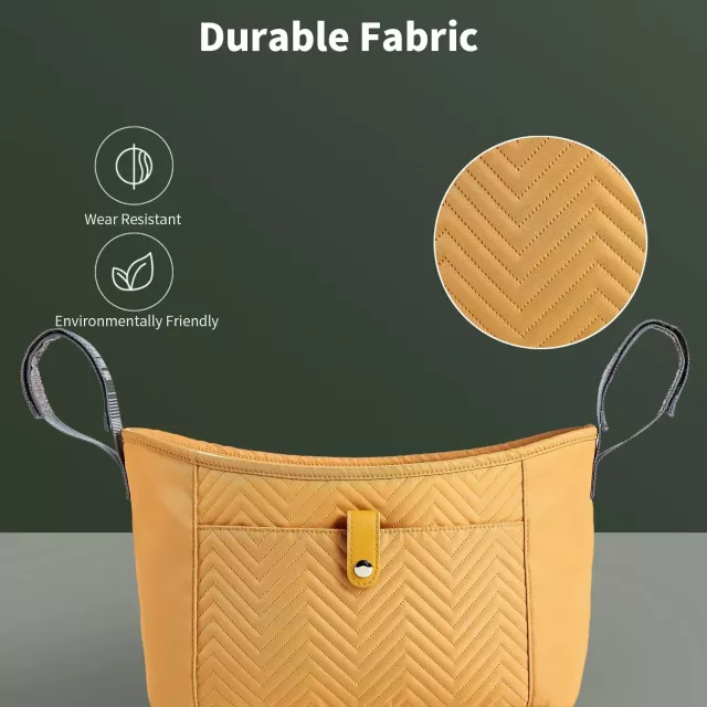 What makes this stroller bag special? It’s the perfect balance of form and function — slim enough not to bulk up your stroller, yet roomy enough to hold all the essentials. Plus, it’s made with no harmful chemicals, so you can feel confident using it around your baby.
