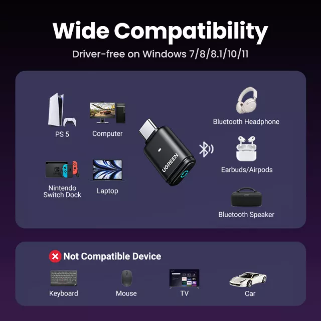 Use it while gaming to chat with teammates using your Bluetooth headset, or pair it with a wireless speaker for movie nights at home. It’s also great for connecting Bluetooth headphones to your Switch on the go or enhancing your PC’s audio experience during work or play. Whenever you need a reliable Bluetooth connection without the hassle of wires, this adapter is your go-to solution.