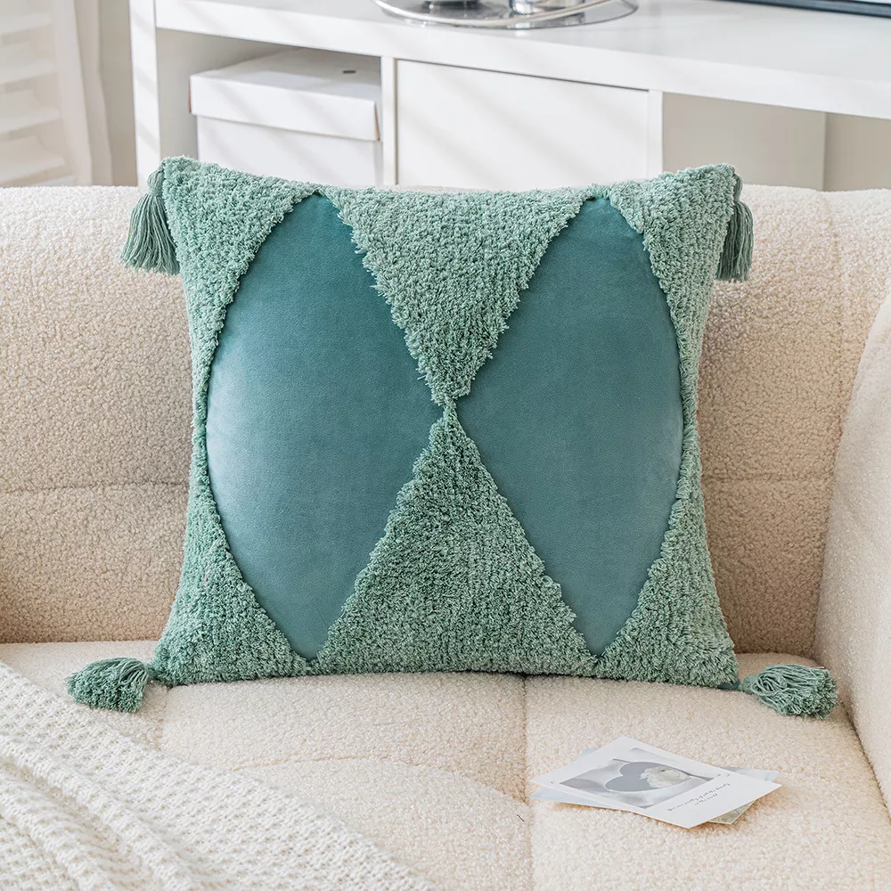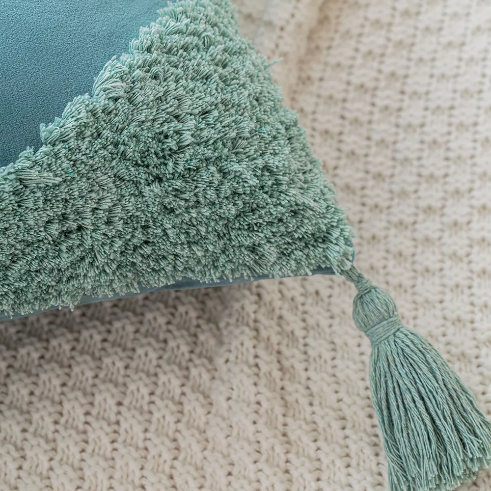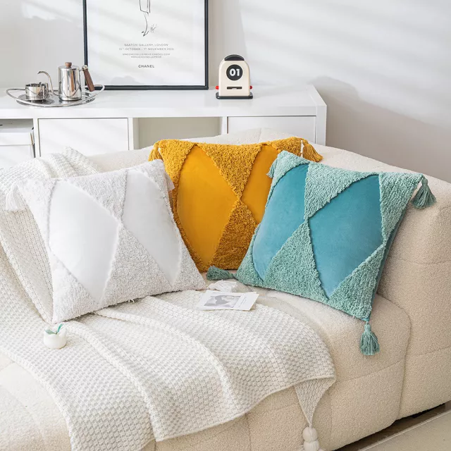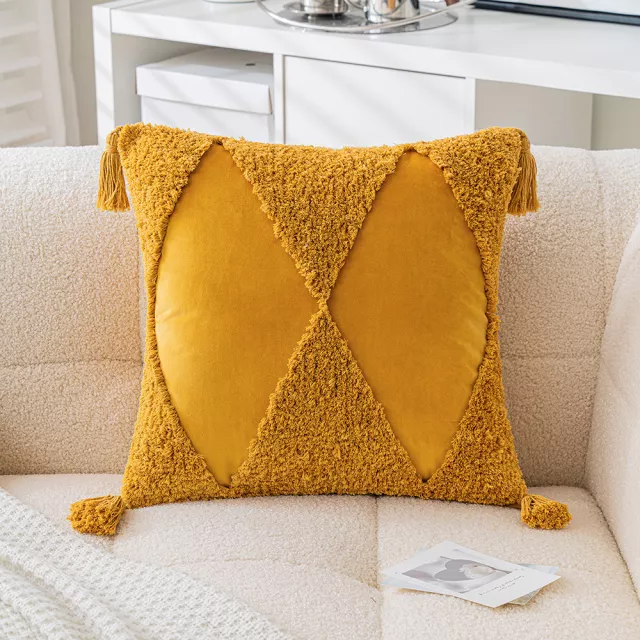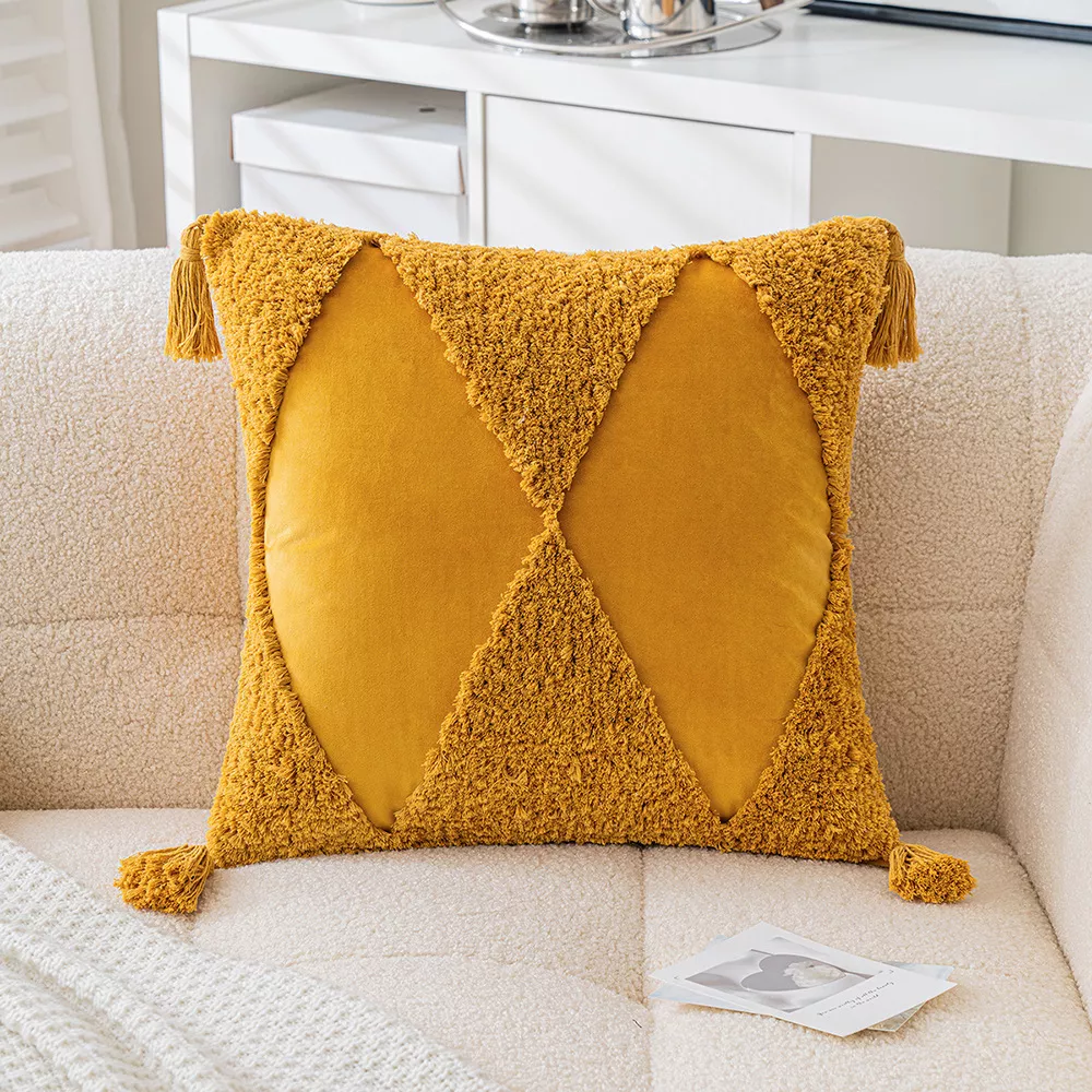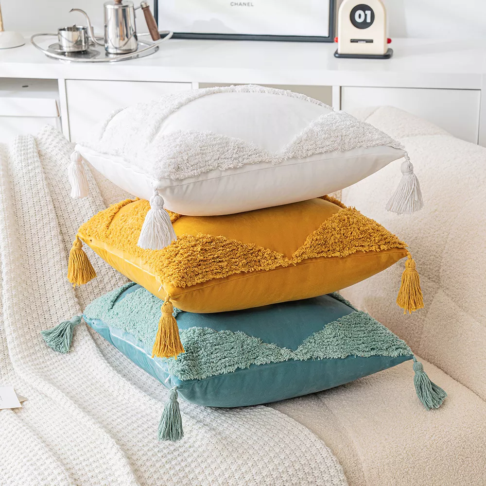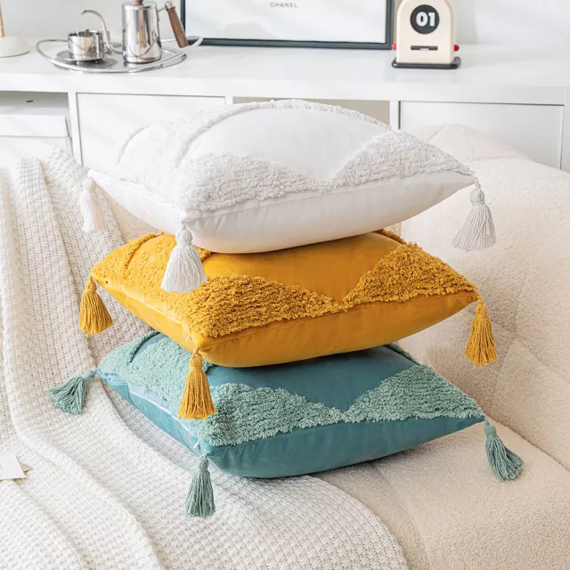 Add instant charm and softness to your space with the Velvet Tufted Tassel Pillow Cover. Designed with a nod to bohemian aesthetics, this 18 x 18 inch pillow cover combines elegant texture with casual flair. Whether tossed on a modern sofa or layered on a cozy bed, its tufted surface and playful tassel edges bring personality and warmth to any setting.