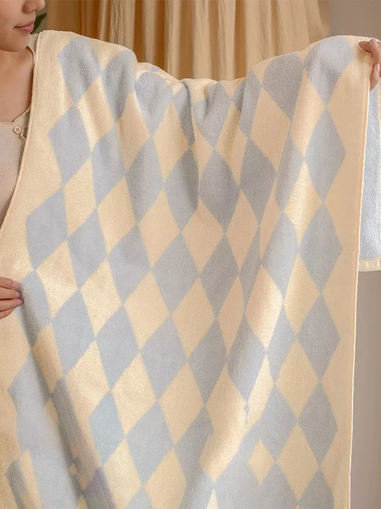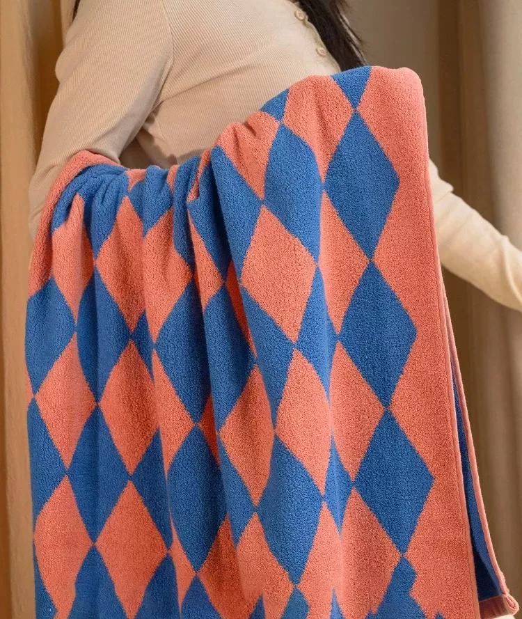 Don’t settle for scratchy, lifeless towels. Treat yourself to the gentle feel and classic style of this diamond checkered cotton towel. Perfect for the beach, your bathroom, or your gym bag, it’s a must-have for anyone who values comfort and quality in every detail.