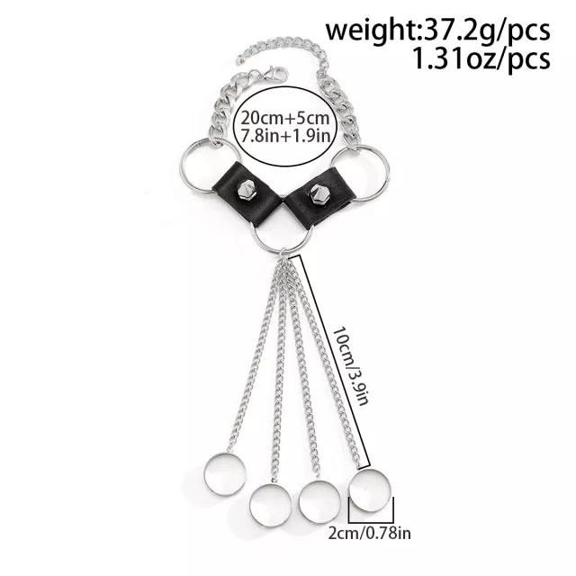 Crafted to command attention, this bracelet is lightweight yet substantial, weighing just 1.31 oz. The adjustable fit and link chain design provide both comfort and stability, allowing it to move with your hand while keeping its bold structure intact. The rich black PU leather contrasts dramatically with the silver-toned iron alloy hardware, creating an arresting look perfect for parties, concerts, cosplay, or adding edge to everyday streetwear.