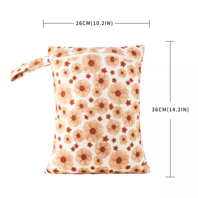 Each bag measures approximately 10 x 14 inches, giving you plenty of room to carry diapers, wipes, extra clothes, or even snacks and toys. Thanks to the waterproof PUL lining, you can confidently store wet or soiled items without leaks or odors escaping. The smooth zipper closure and handy loop handle make it easy to hang, carry, or attach to a stroller or diaper bag for on-the-go convenience.