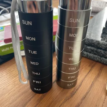 this aluminum pill organizer is a practical and stylish solution for keeping medications safe and organized it’s waterproof, preventing damage from rain or humidity while the seven compartments give plenty of space for daily pills or vitamins the compact and lightweight design makes it perfect for travel or everyday carry the secure latch prevents accidental openings and spills the metal case feels strong and durable without being bulky the clear labeling of compartments helps me maintain a consistent routine i appreciate how easy it is to open and close the compartments and how well the case protects my pills it’s a great choice for anyone looking for a reliable and elegant pill organizer