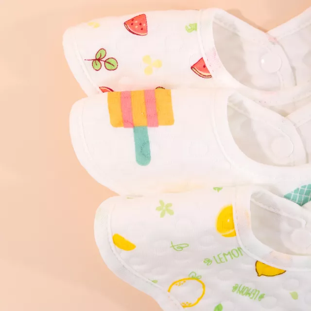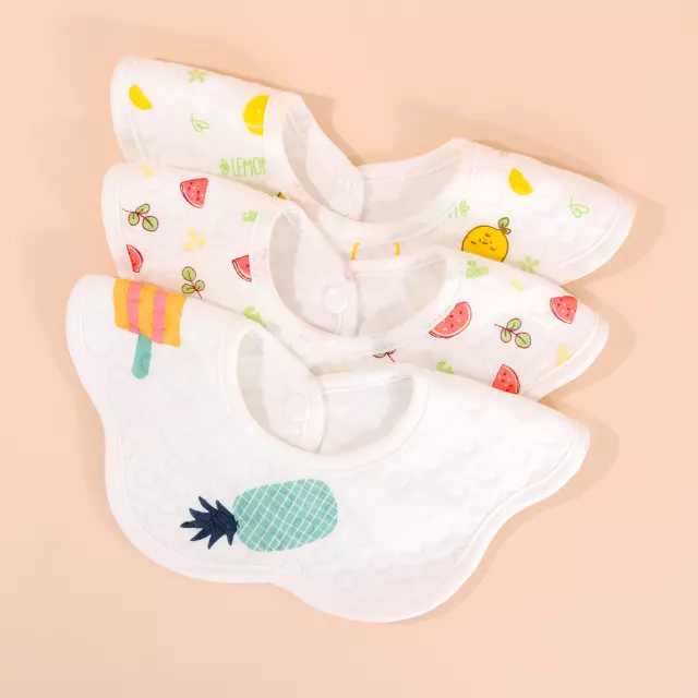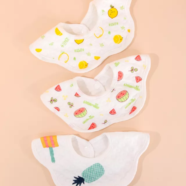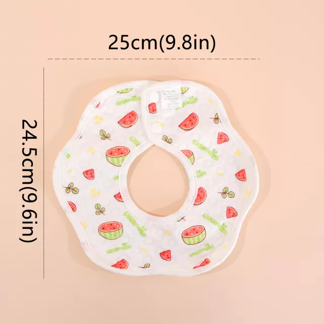 This unisex baby bib combines comfort with functionality. Crafted with a double-layered design, it features an inner waterproof barrier to prevent spills from soaking through, while the outer cotton gauze is light, airy, and kind to your baby’s sensitive skin. The cute fruit and vegetable prints add a fun touch to your baby’s outfit, making them look even more lovable. Its practical rice pocket at the bottom cleverly catches crumbs and dribbles, minimizing clean-up and saving you time.