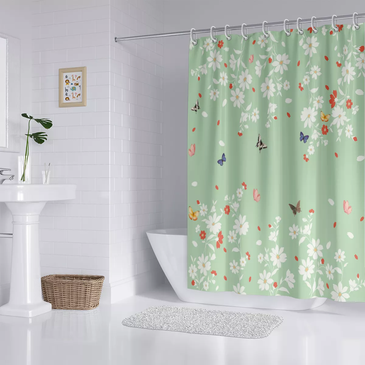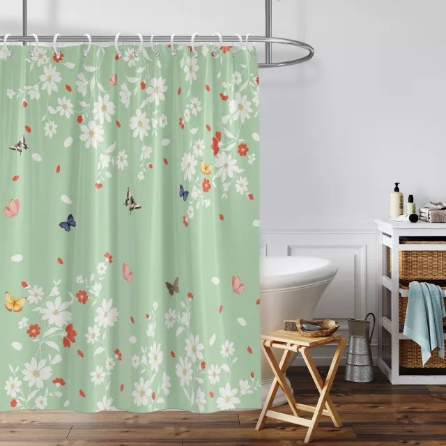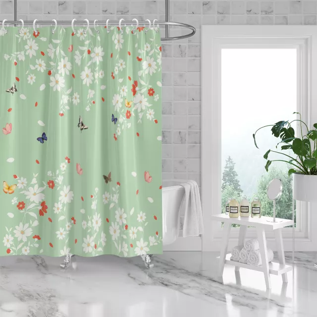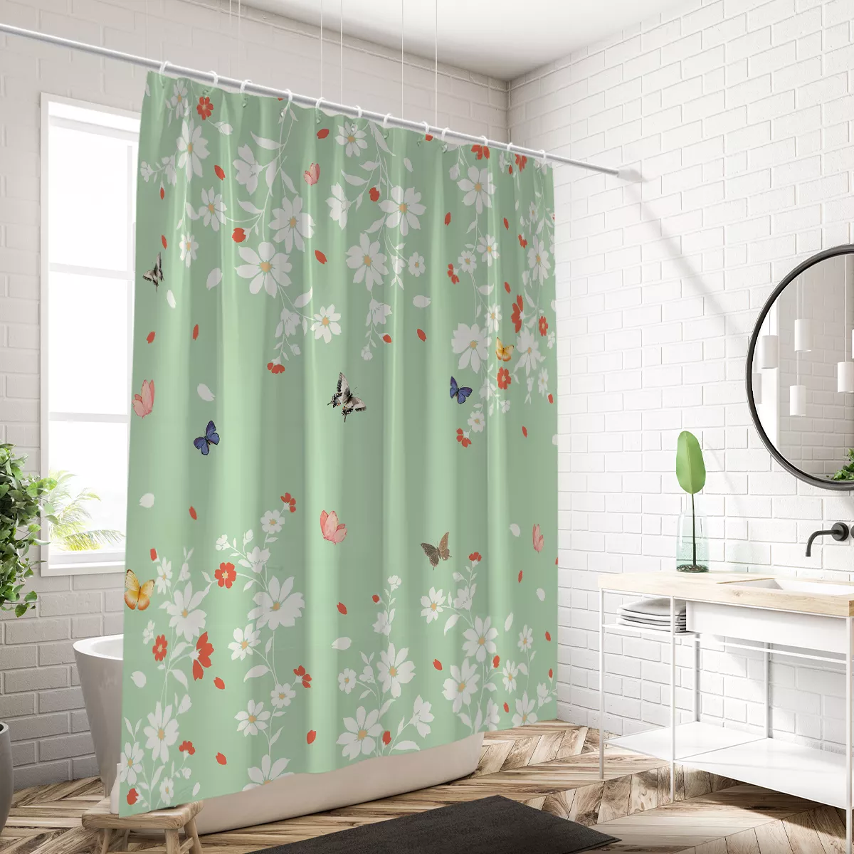 Bring the beauty of nature indoors with this stunning waterproof shower curtain featuring an elegant pattern of flowers and butterflies. Designed to instantly uplift the atmosphere of your bathroom, this curtain combines both style and function. Whether you’re starting your day with a refreshing shower or winding down at night, the calming pastel tones and delicate botanical design add a soft, pastoral charm to your personal space.