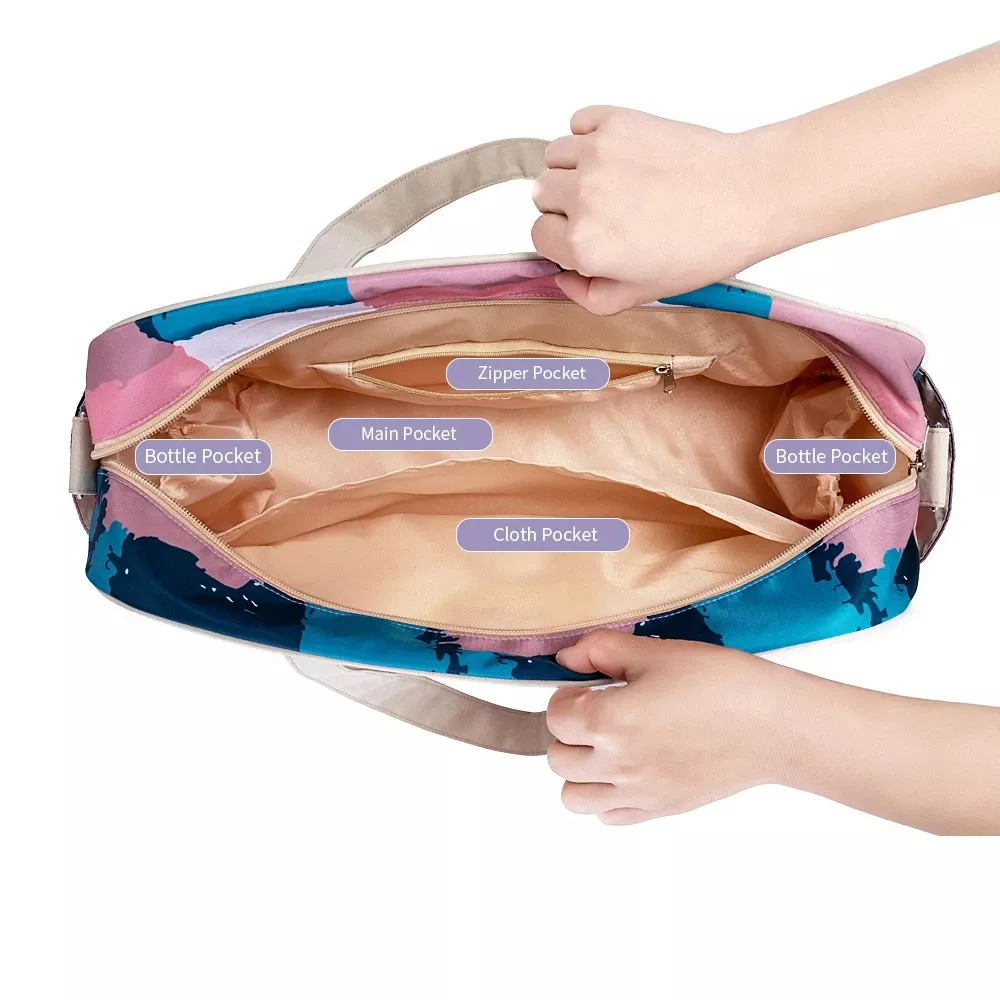 Crafted from durable, water-resistant nylon and built with a secure zipper closure, this bag offers peace of mind and practicality in every situation. Its stylish tote design, vibrant print pattern, and convertible carry options let you transition effortlessly from diaper duty to daily outings—without ever missing a beat. Spacious yet lightweight, it delivers smart storage with plenty of pockets and thoughtful compartments for bottles, diapers, wipes, clothes, toys, and more.