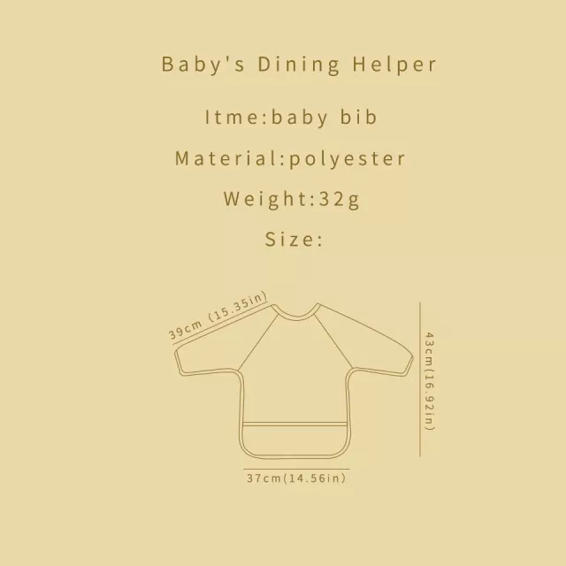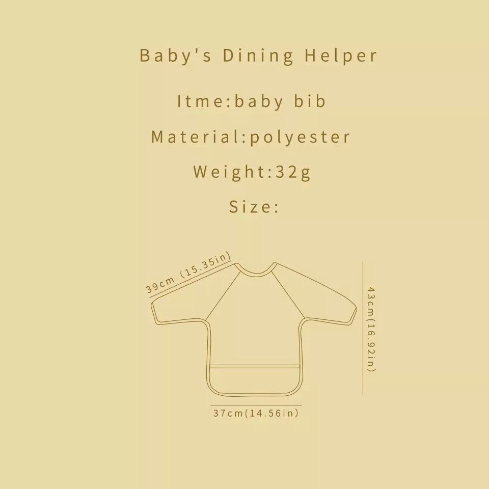Crafted from high-quality polyester, this bib is lightweight, breathable, and incredibly soft against your baby’s skin. The long sleeves provide full arm coverage, while the elastic cuffs ensure a snug, comfy fit that keeps food, liquids, and stains at bay. Thanks to its waterproof layer, spills and messes are no match – simply wipe clean or rinse off after use. And the best part? No need for constant laundry – it’s wash-free and reusable!