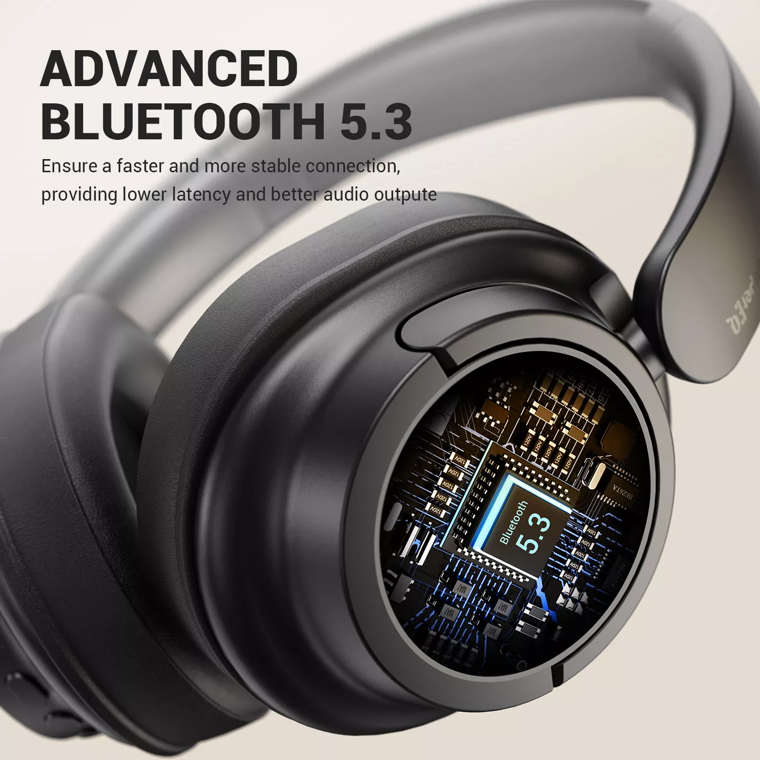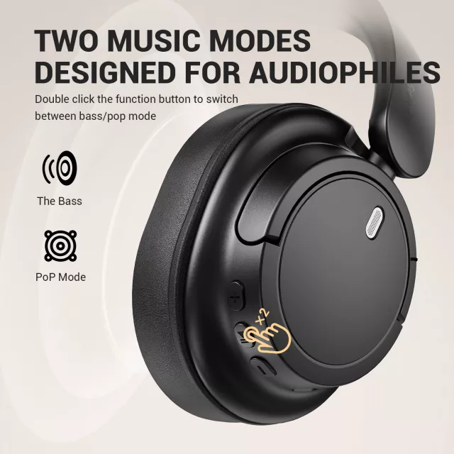 Switch between two dedicated EQ modes with a simple double-click. Want bold bass? Or perhaps a bright pop sound? You’re in control. With Bluetooth 5.3 technology, these headphones give you a seamless, stable connection up to 33 feet. Plus, the built-in HD microphone ensures clear calls and instant access to your voice assistant. The soft memory foam ear cushions and adjustable headband offer maximum comfort for all-day wear. And with a foldable, lightweight design at just 7 ounces, they’re easy to carry wherever you go.