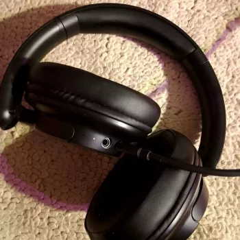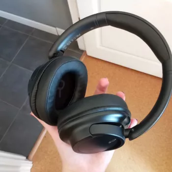 These headphones are super comfortable to wear thanks to their ergonomic design and soft memory foam padding.