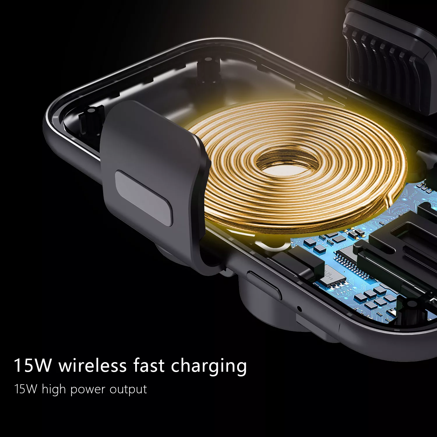 This wireless car phone holder is ideal for anyone who spends time behind the wheel. Whether you’re commuting to work, running errands, or embarking on a road trip, it keeps your phone accessible and fully charged. Its intelligent design minimizes distractions, helping you focus on the road while staying connected. Make your drive safer and more convenient with a charger and holder that work together seamlessly.