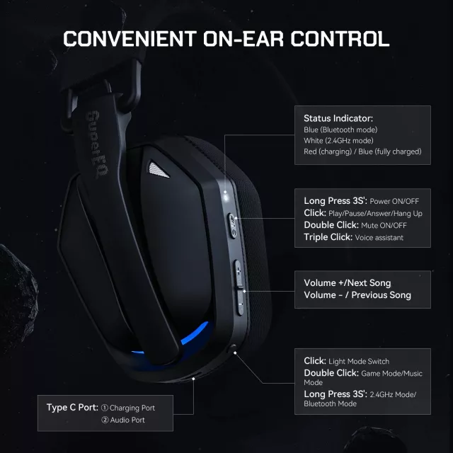 The advanced 2.4GHz wireless connection, paired with a USB/Type-C transmitter, offers an ultra-low latency of just 30 milliseconds, eliminating annoying audio delays and keeping your sound perfectly synchronized with the action. With a stable wireless range of up to 50 feet, you get the freedom to move around without losing connection, perfect for intense gaming sessions or casual listening.