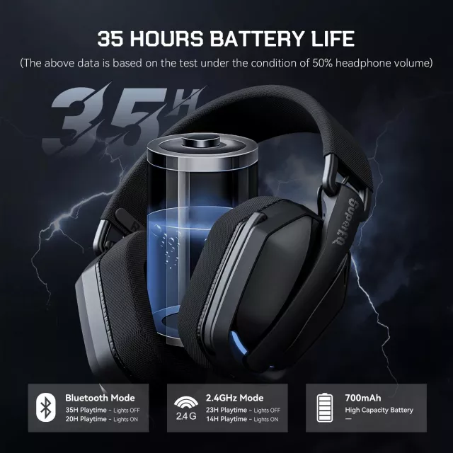 This headset is just what I needed. The 40mm drivers deliver sound that's rich and detailed, perfect for both gaming and music. It has a latency of only 30ms which means my games are perfectly synced with no lag at all - it feels like everything is happening in real-time! There are three connectivity options: wireless, Bluetooth, or wired, so I can choose whatever suits me best at any given time. What impressed me most was the battery life - up to 35 hours on one charge! Plus the comfort fit design makes it great for extended use without discomfort. And let's not forget about the adjustable noise-cancelling mic and custom RGB lighting!