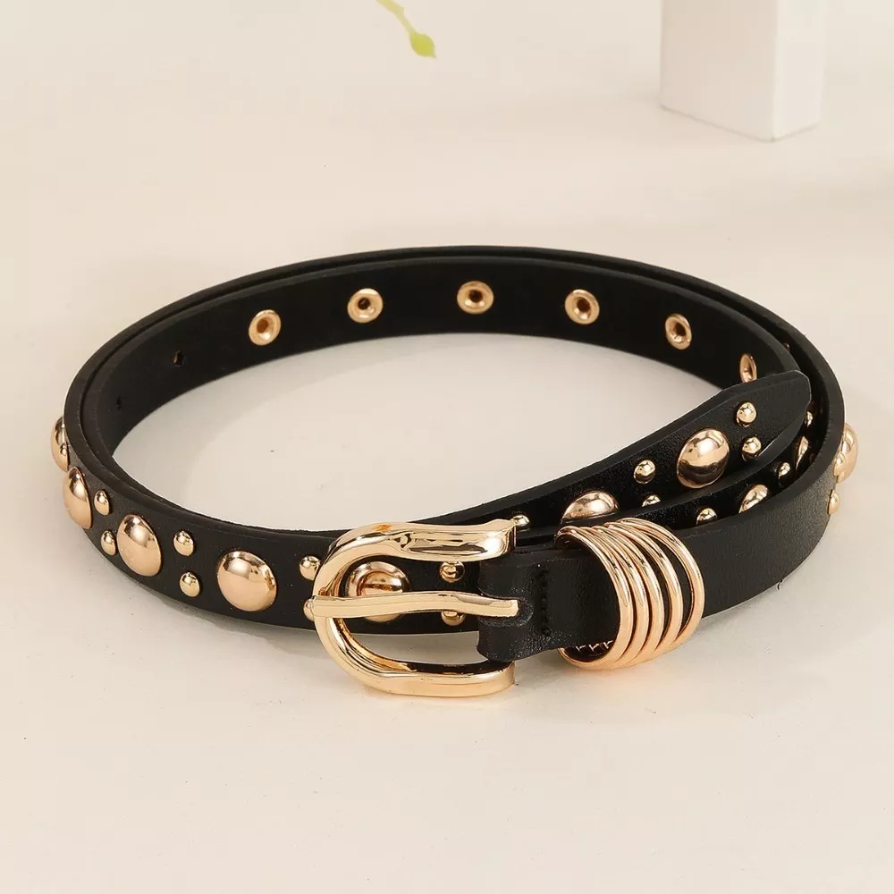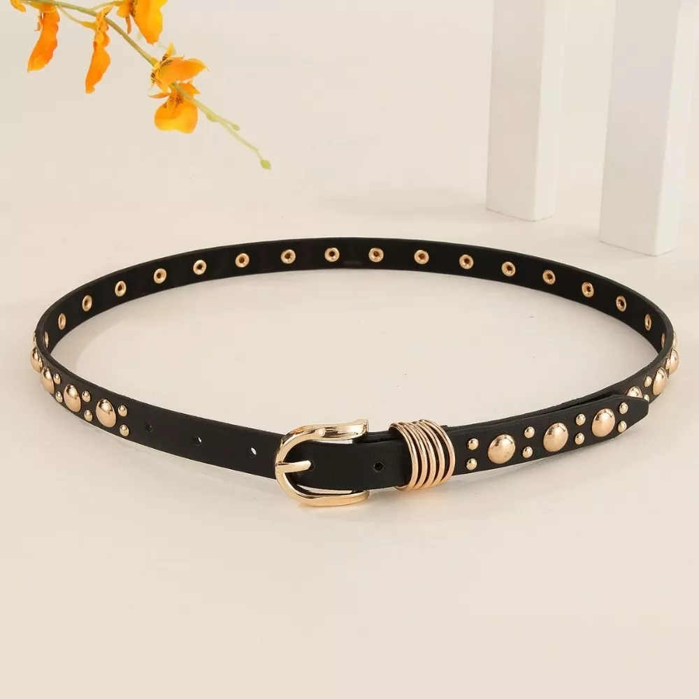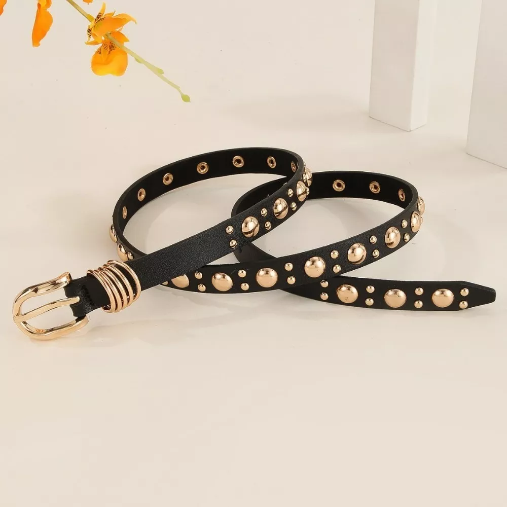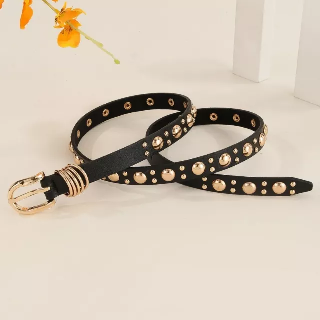 Elevate your outfit with this striking women’s punk belt that blends edgy metal details with a sleek, casual design. Crafted from high-quality PU leather, this belt is designed to stand out while offering comfort and durability. Its 1.8-inch width provides the perfect balance — wide enough to make a statement but slim enough to fit seamlessly under jackets or through your favorite jeans and skirts.
