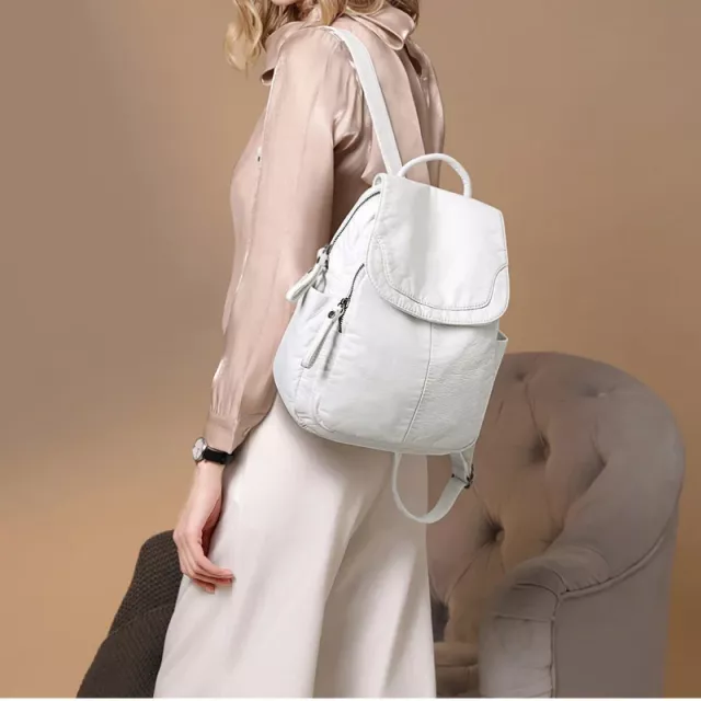 What a fantastic find! This small white-washed leather backpack is everything I could have asked for. It's compact and lightweight, which makes it perfect for my daily commute to work. I can easily fit in my phone, wallet, makeup and even my tablet without feeling weighed down at all. The practical compartments are so well thought out - there’s an interior pocket just for the phone, a zippered compartment and main section to keep things organized. Plus the exterior open pocket is great for quick access items like keys or cards. And oh boy, does it feel comfortable to carry around! The arcuate shoulder straps distribute weight evenly across my shoulders—no more sore muscles after a long day out! But what really sets this bag apart is its secure closure design; both zipper and cover add that stylish touch while keeping all of my belongings safe inside.