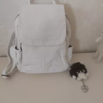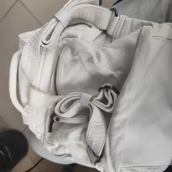 I'm totally smitten by this little beauty—a white washed leather backpack that's as chic as it is functional. Love how light yet sturdy it feels on me; perfectly sized under 20 liters capacity means no unnecessary bulkiness but plenty of room for essentials like makeup or tablet etcetera plus the handy compartments make organizing super easy!