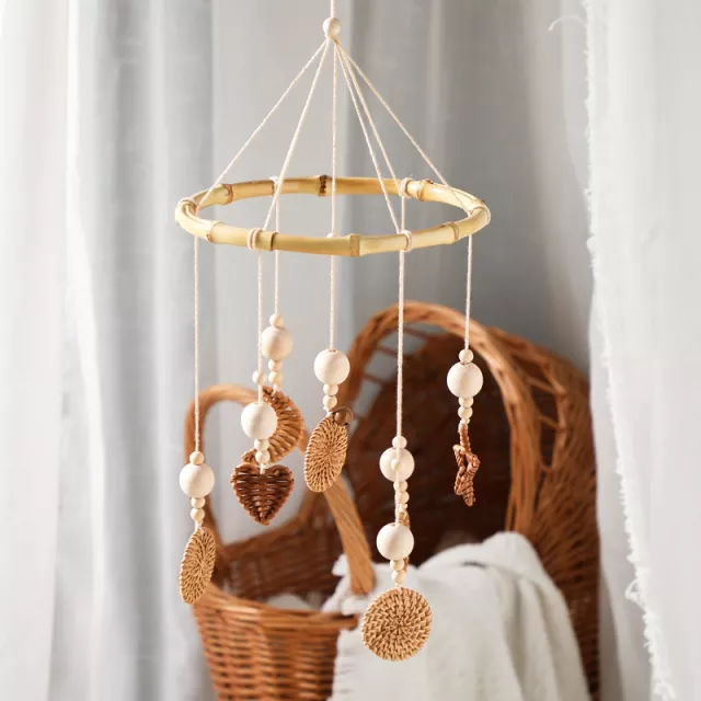 At 19.6 x 8 inches, the mobile is perfectly sized to hang above your baby’s crib, where it gently rotates and delights with its soothing movement and sound. The natural texture and look of the wood complement any nursery style while being completely gender-neutral – ideal for baby boys or girls.