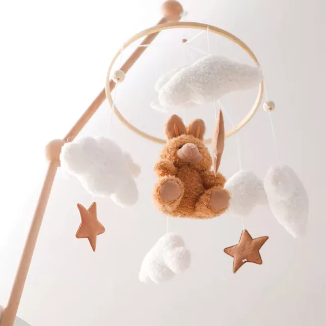 Transform your baby’s crib into a calming, magical space with this beautifully crafted Wooden Baby Crib Mobile. Designed with love for newborns and infants up to 12 months, this elegant hanging toy features soft lambhair bear and bunny pendants that gently sway, capturing your baby’s attention and stimulating early visual development. Whether it’s naptime or bedtime, this mobile provides peaceful motion and soft, musical sounds to lull your little one to sleep. Perfect for busy parents looking to soothe their baby naturally, this mobile doubles as a delightful nursery decoration and a developmental toy.