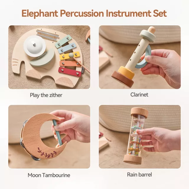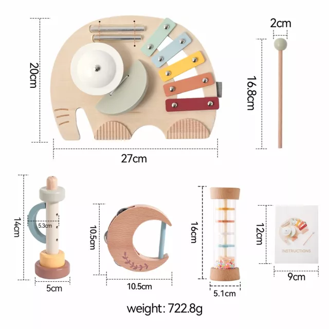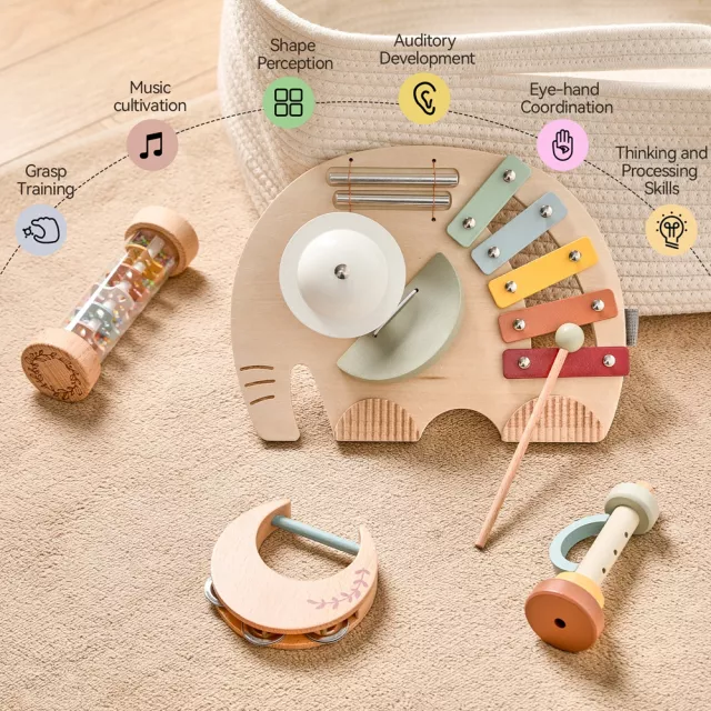 Give your child the perfect first taste of music with this charming wooden instrument set. Whether it’s the soft ring of a bell or the cheerful chime of the xylophone, each sound is a step toward discovery and joy. Encourage your baby’s natural curiosity through music, movement, and meaningful play—add this delightful set to your cart today and create harmony at home.
