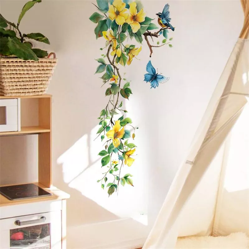 Transform any room into a fresh, nature-inspired retreat with our Yellow Floral Vine Butterfly Wall Decals. Delicately designed with bright yellow flowers, graceful butterflies, and charming birds, these translucent matte PVC stickers create a stunning mural effect on walls, windows, refrigerators, cupboards, and more. Easy to apply and even easier to love, this DIY home décor solution lets you personalize your space effortlessly.